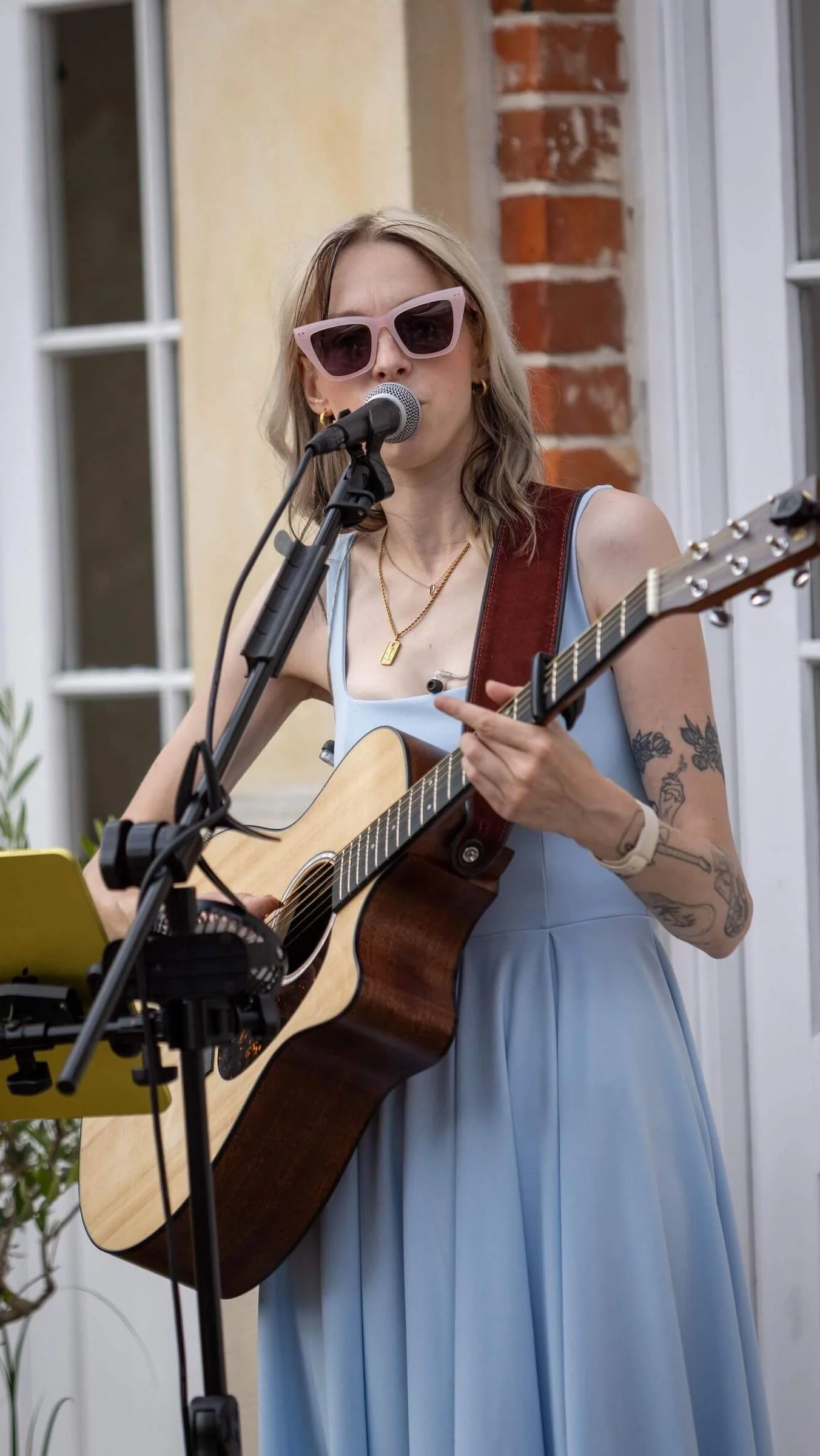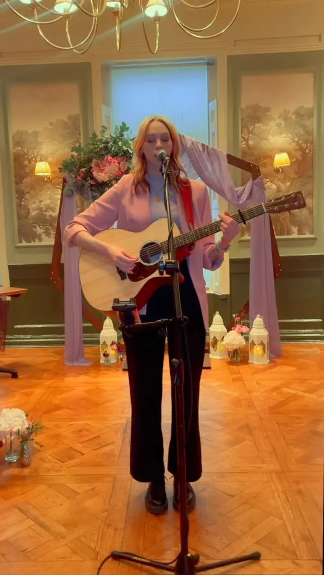 I’m Amelle! A big, warm welcome to you. I’m a solo, acoustic wedding singer who celebrates all things love and music.