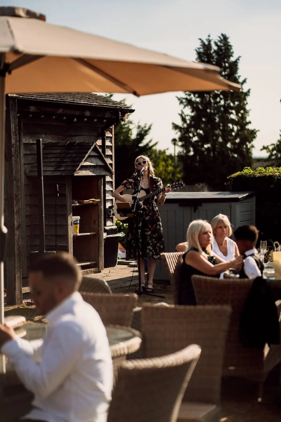 We found Amelle singing at a wedding fayre and knew straight away that we wanted her to sing at our wedding. We booked her on the spot and from that moment Amelle was friendly, accommodating and professional. She sang outside whilst our guests were enjoying the day and everyone enjoyed her beautiful acoustic music. We are so grateful that Amelle was part of our day and I would definitely recommend Amelle for any event you may have planned.